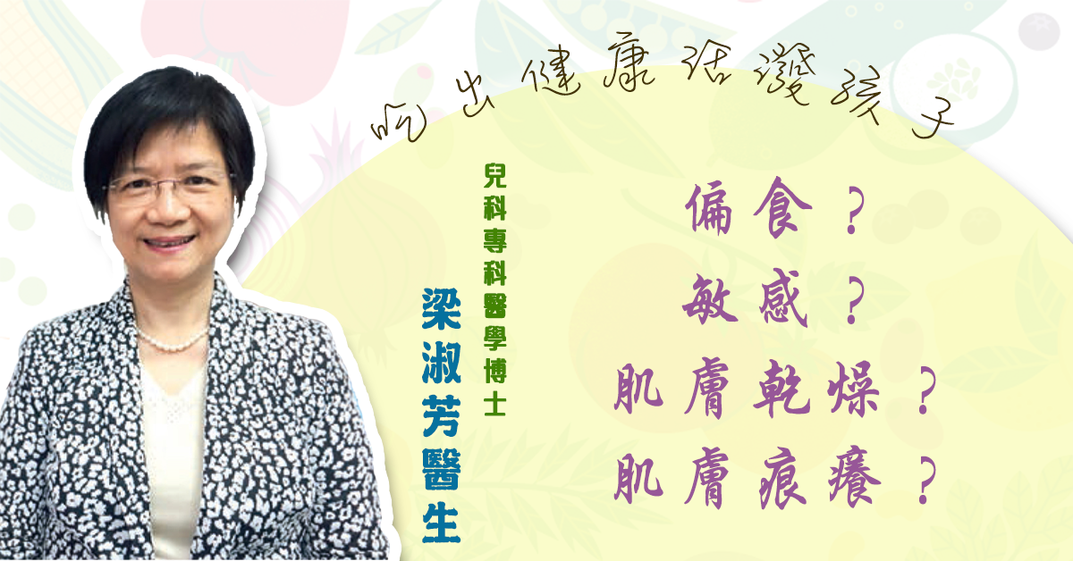 幾乎每個孩子從接近1歲起,就會開始出現一些偏食行為;另外,孩子肌膚敏感乾癢也是許多家長共同的困擾。兒科專科醫學博士-梁淑芳醫生,將逐一為你解決問題。