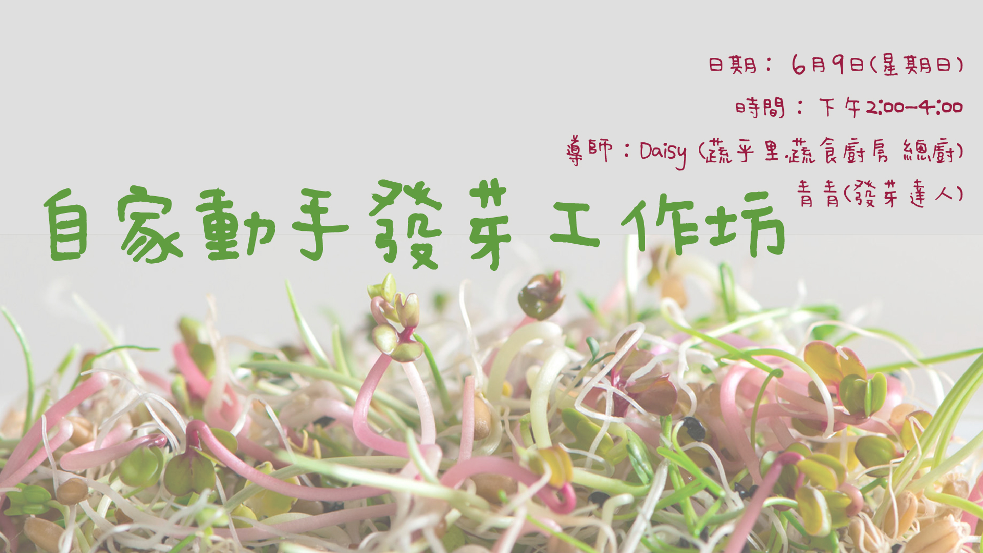 種子發芽時會吸收大量水份,細胞內的酵素會活躍起來,維生素及纖維素亦會增加。在家種植有機菜,同時實踐減碳生活。 自家動手發芽,在體驗感受種植樂之餘,又能兼取高酵素生食營養,實踐減碳,一舉數得。 工作坊中會教授 小麥草、綠豆、鷹嘴豆、芝麻、糙米發芽技巧。 參加者可品嚐示範成品:生機活力沙律及清腸排毒果汁 日期:6月9日(星期日) 時間:下午2:00-4:00 導師:Daisy (蔬乎里.蔬食廚房 總廚)、青青(資深發芽達人) 費用:非會員 $320 會員 $290 註:參加者可帶走少量發芽成品 報名:https://forms.gle/cDvwDXDrfZhfP58v6 查詢:2619 0000/ WhatsApp 6773 6361