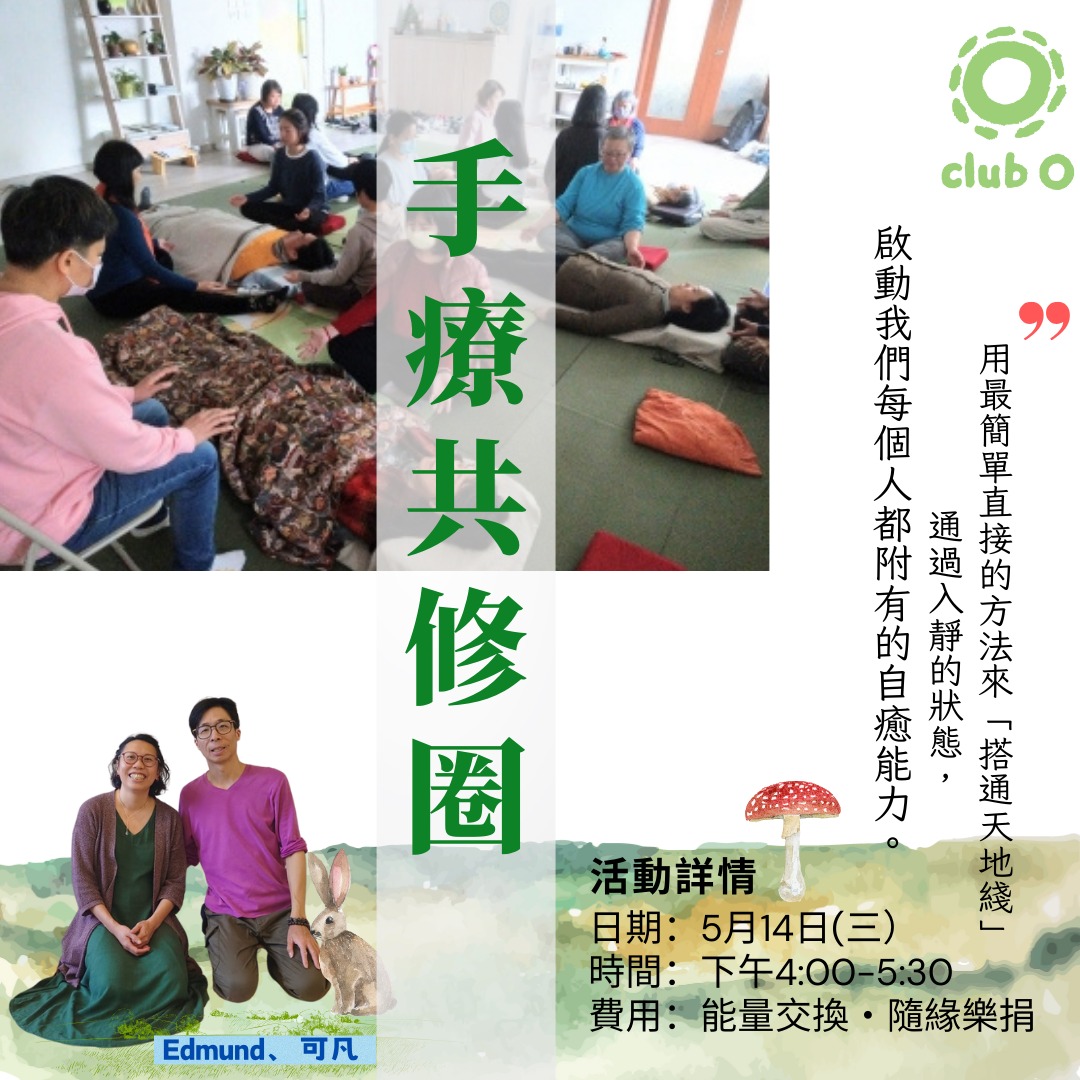 Club O 旺角亞皆老街86號昌明大厦7字樓FGH室手療共修圈 日期:5月14日(星期三 ) 時間:16:00-17:30 地點:九龍旺角亞皆老街86號昌明大廈7樓F室 收費:隨心定價 導師:周可凡 / Edmund Fung ▌Google Form 報名:https://forms.gle/fMbuYQSbgTeypknn9 ▌報名、查詢詳情 2619 0000 │ WhatsApp 6773 6361 https://wa.me/85267736361