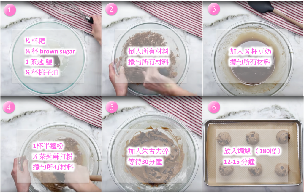 純素朱古力曲奇 無蛋 無奶 情人節必備 送禮心意 材料 Part A 1/2 杯糖 3/4 杯 brown sugar 1 茶匙鹽 1/2 杯椰子油 Part B 1/4 杯植物奶 Part C 1 杯半 麵粉 1/2 茶匙蘇打粉 Part D 適量朱古力碎 做法 倒入所有Part A材料 攪拌所有材料 加入Part B材料,攪拌 倒入所有Part C材料,攪拌 加入Part D材料,等待30分鐘 放入焗爐(180度),12-15分鐘 完成! Elvis2018-02-10T09:08:09+08:00 分享至社交平台 FacebookXLinkedInTumblrPinterest
